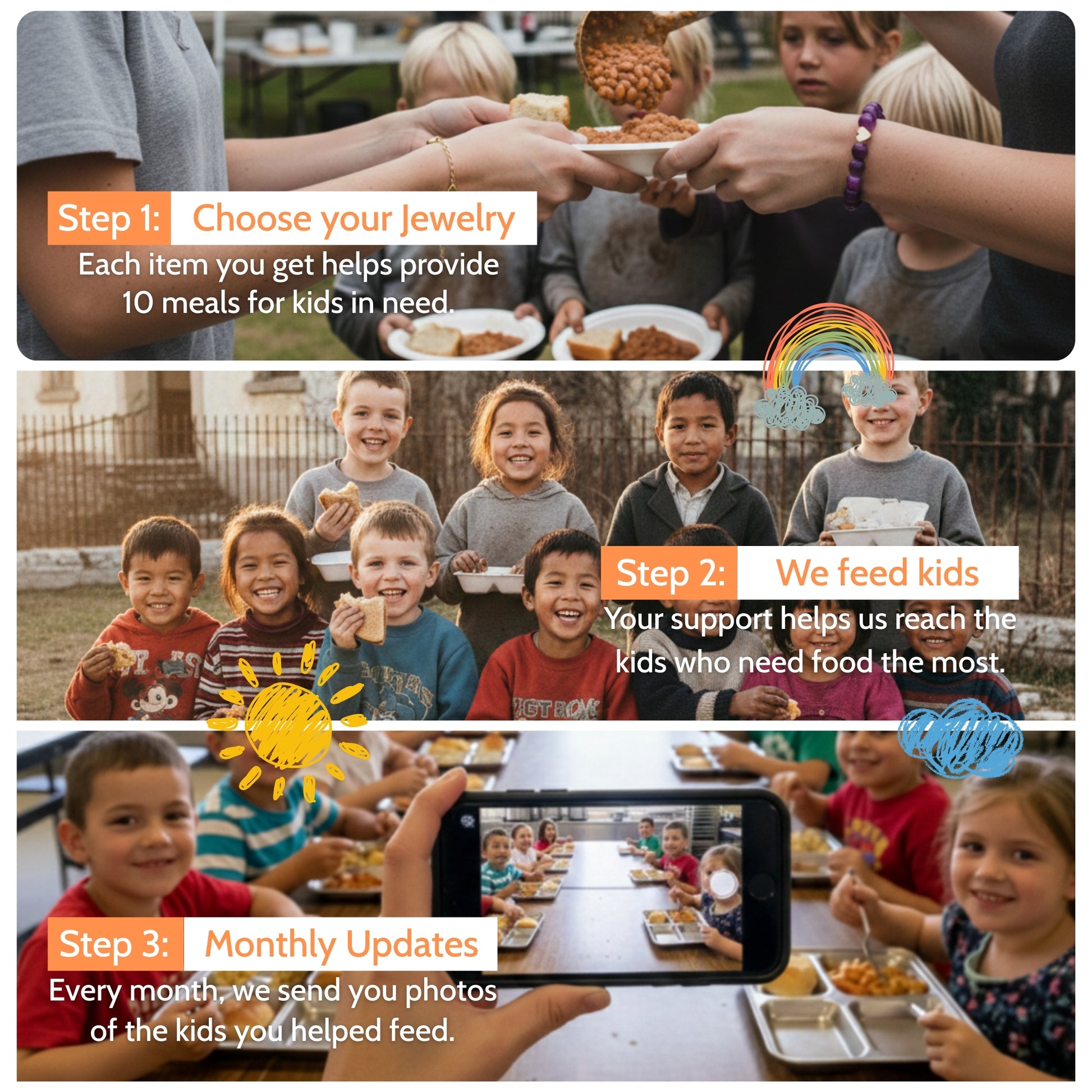 Every bracelet, necklace, and pair of earrings exists because of them—the millions of children facing hunger around the world. Children who deserve better. Children who shouldn't have to worry about something as basic as food.